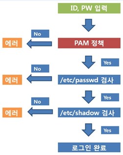 입력 받은 암호를 /usr/lib/cracklib_dict에 있는 사전과 비교하여 새로운 암호를 /etc/security/opasswd에 저장되어 있는 이전 암호 목록과 비교하여 이전 암호와 비숫한지 확인. |