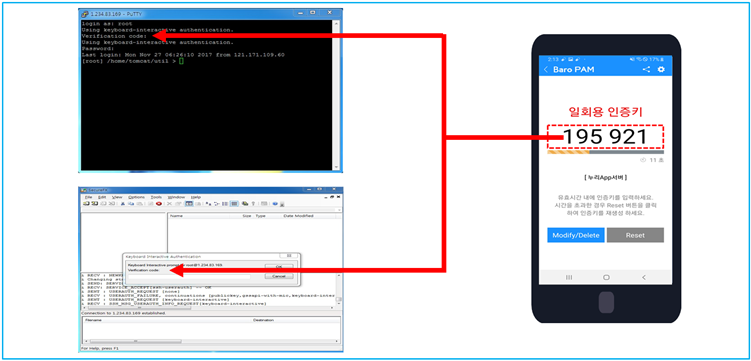 현상 : 서버에 BaroPAM 적용 후 일회용 인증키를 입력하는 항목(Verification code: 또는 Password & Verification code:)을 스킵(Skip)하여 로그인이 안되는 현상 발생