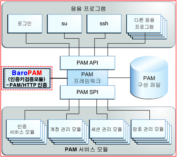 그러나, Mac/Linux/Unix의 경우 운영체제에서 “PAM(Pluggable Authentication Module)”이라는 2차 인증을 적용할 수 있는 모듈을 제공하며, Windows/NT-Server의 경우 “GINA/CP”라는 추가 인증을 적용할 수 있는 모듈을 제공하고 있다.