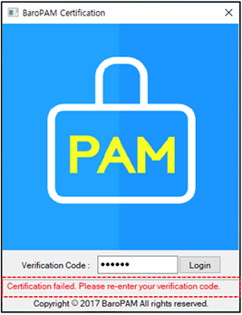 조치 : 환경설정 파일인 pam_baro_auth.ini 파일의 SECURE_KEY 옵션이나 설정값 확인.