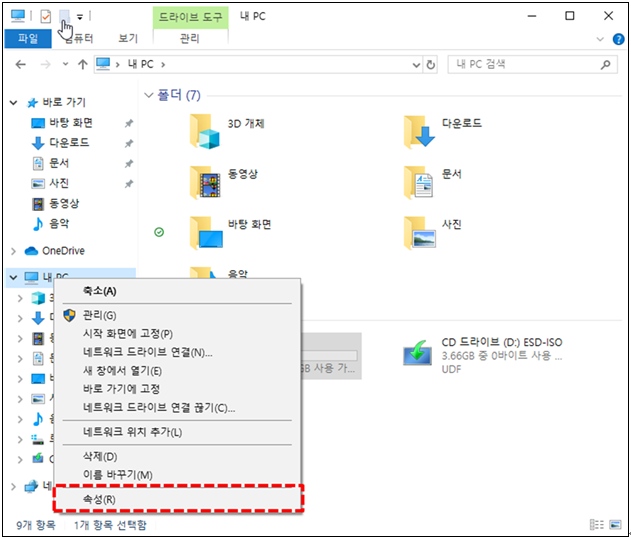 BaroPAM을 설치하기 위해서는 "Windows의 Version과 시스템 종류, 컴퓨터 이름"을 알아야 한다. 그러기 위해서 "탐색기 -> 내 PC -> 마우스 오른쪽 버튼 클릭"하면 다음과 같은 화면이 나타난다.
