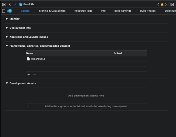 라이브러리 파일은 두가지 종류로 제공한다. XCode의 iPhone simulator 용과, iPhone용 두가지를 필요에 따라 "libbaroutil.a"로 변경하여 사용한다.