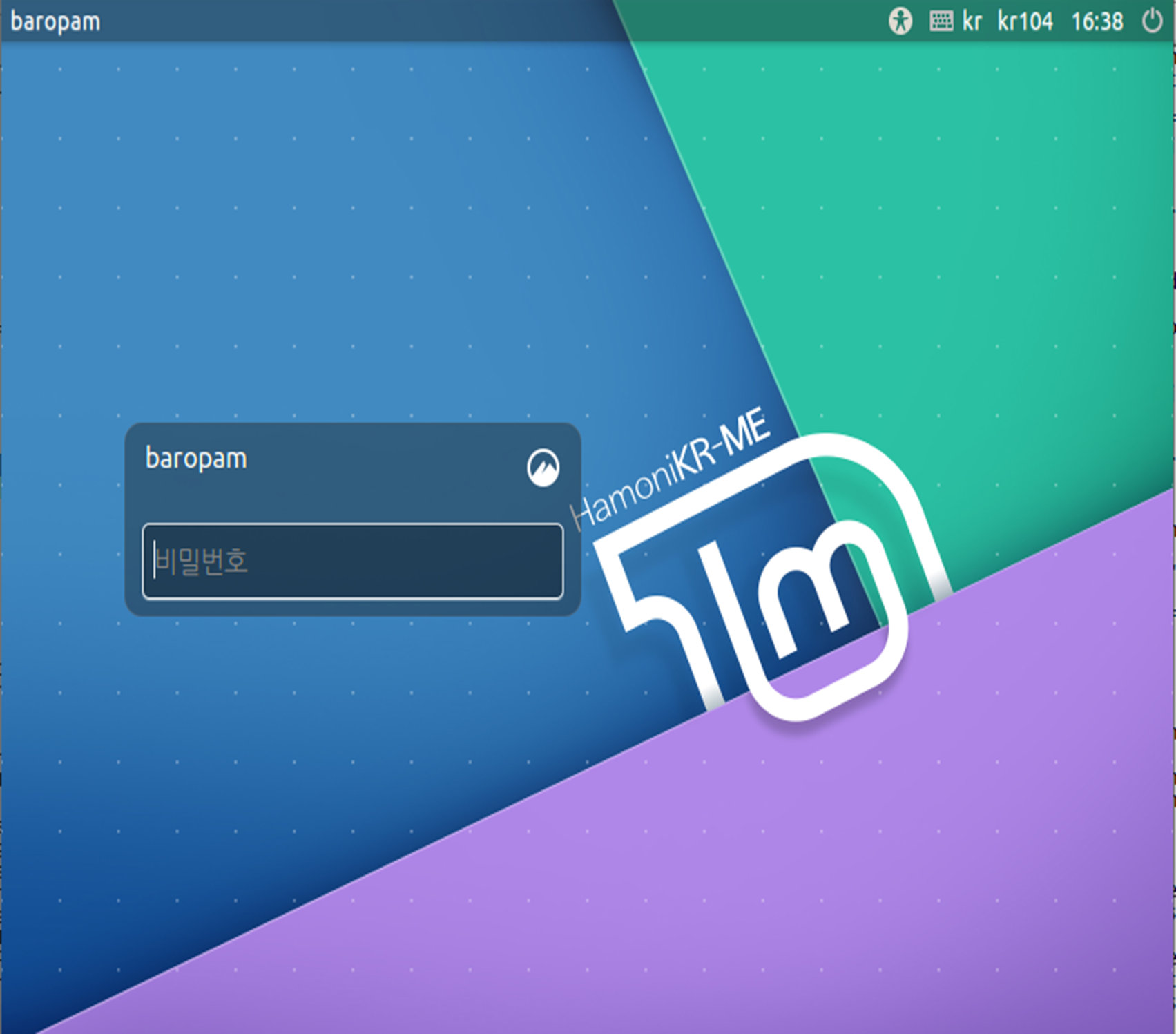 참고로 자동로그인인 경우 비밀번호를 입력하는 화면은 나타나지 않고, 곧바로 "4.하모니카OS의 메인 화면"으로 넘어 간다.