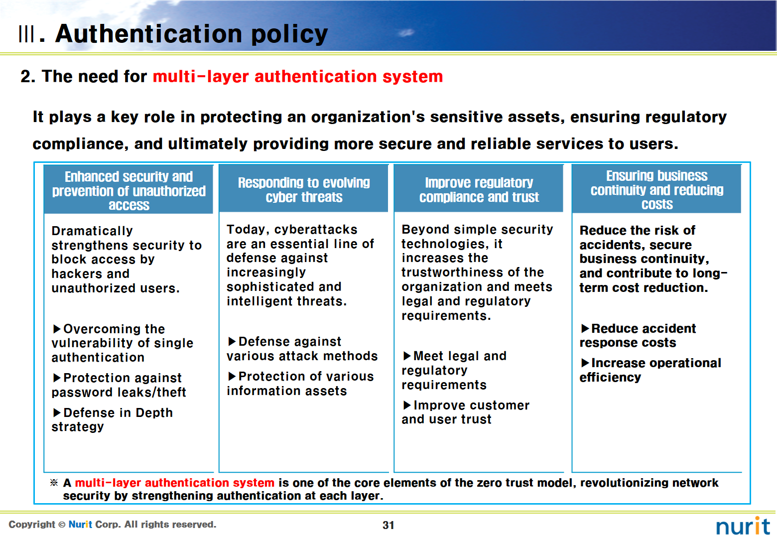 To strengthen security, the order of applying 2nd authentication that supports a multi-layer authentication system is first the operating system (OS), second the administrator account or management console, and third the general user account.