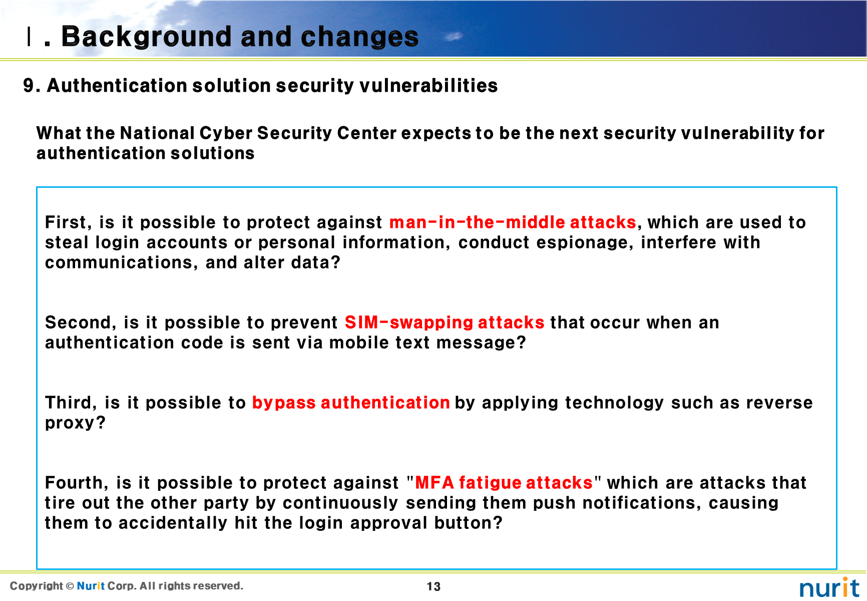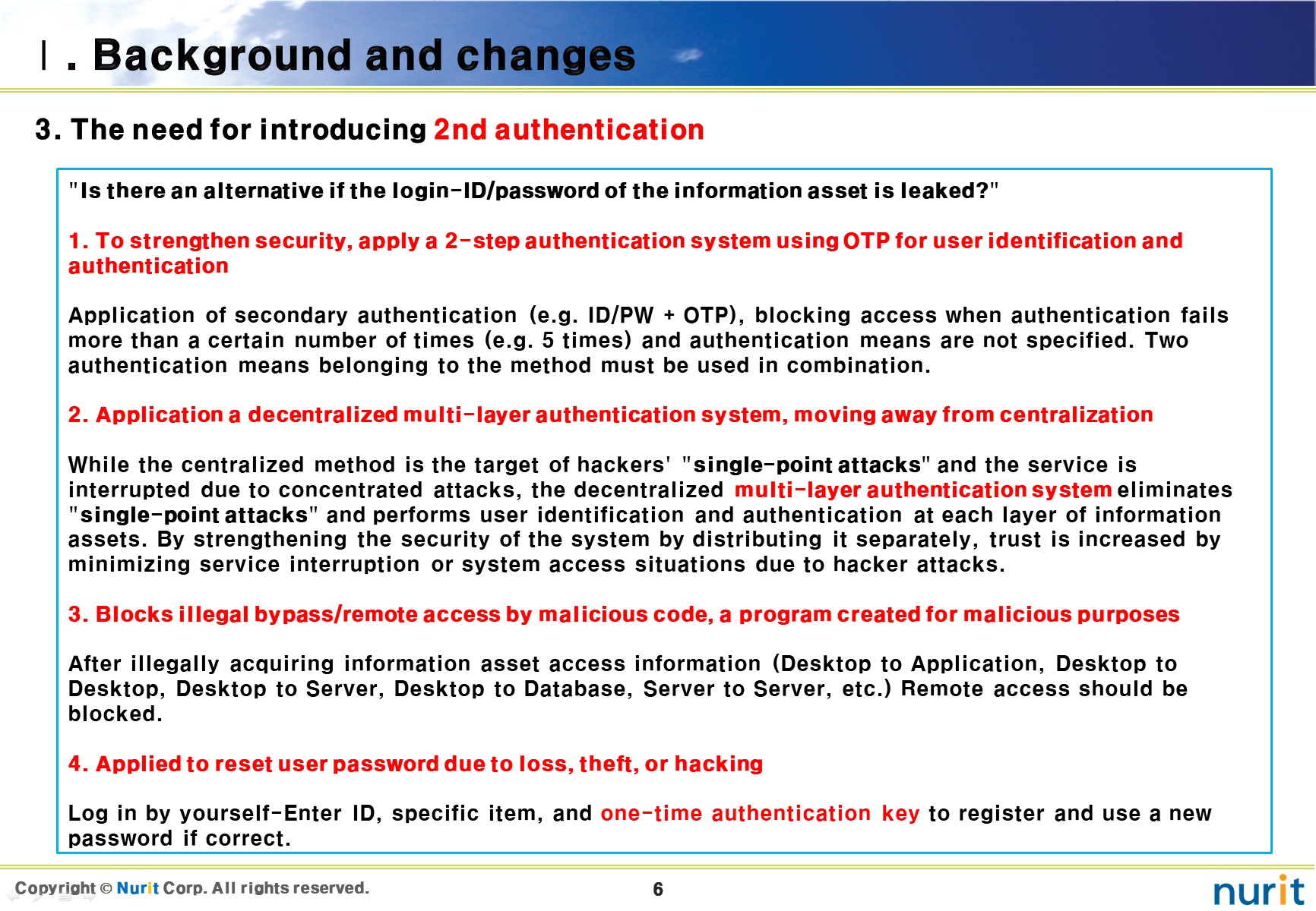 The first security solution to be introduced is a 2nd authentication solution that can block account theft, privilege escalation, and bypass/remote access, Man-in-the-middle attack.