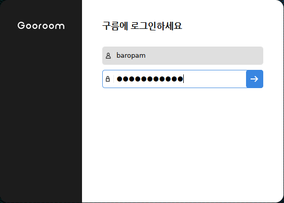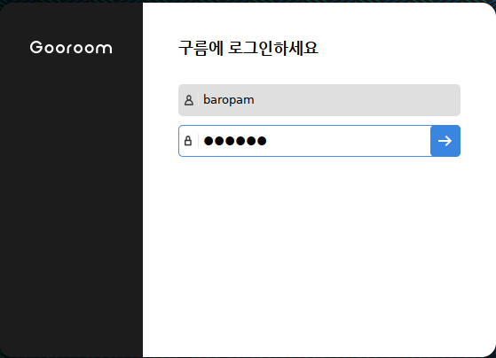 참고로 자동로그인인 경우 비밀번호를 입력하는 화면은 나타나지 않고, 곧바로 "4.구름OS의 메인 화면"으로 넘어 간다.