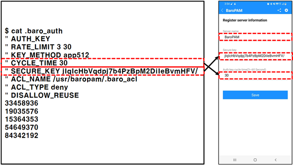 1) PAM authentication (.baro_auth): Set environment setting information in File
