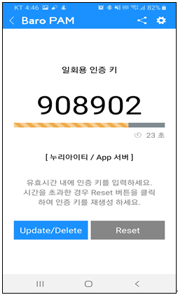 참고) 만약, 사용자별로 스마트 폰 번호 및 개인별로 지정한 일회용 인증키의 생성 주기가 일회용 인증키의 생성기와 다른 경우 일회용 인증키가 달라서 검증에 실패할 수 있다. 반드시 정보를 일치 시켜야 한다.