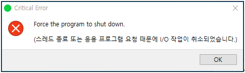 현상 : Force the program to shut down.