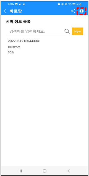 첫번째, "BaroPAM" 앱의 환경설정은 다음과 같은 "환경설정" 아이콘을 클릭한다.