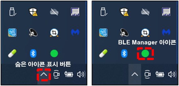세번째, "숨겨진 아이콘" 중에 "BaroBLE Manager"의 아이콘을 클릭하면 다음과 같은 "BaroBLE Manager" 화면이 나타난다.