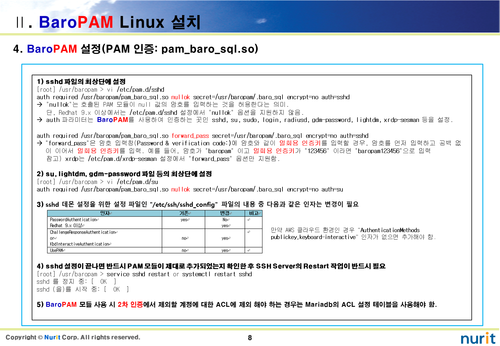 | 정보자산의 보안강화를 위하여 다계층 인증을 위한 BaroPAM 솔루션 설치 요약서(Windows) (0) | 2022.07.18 |