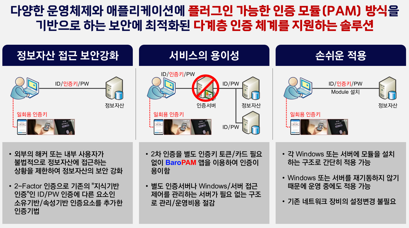앞으로 정보 보안의 흐름은 보안은 강화하고 사용자의 불편함을 최소화하는 방향으로, 기억할 필요가 없는 비밀번호! BaroPAM이 함께 하겠습니다.