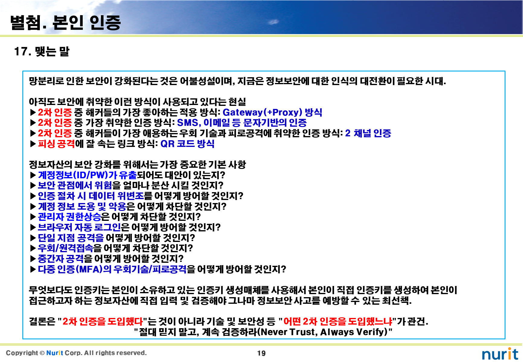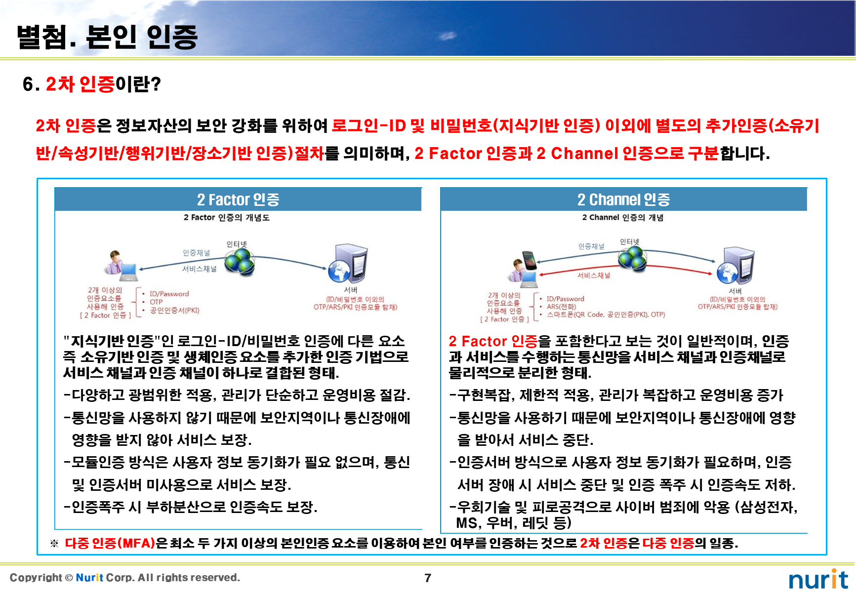 보안 솔루션 중 도입해야 할 1순위가 계정도용, 권한상승, 우회/원격접속, 중간자 공격을 차단할 수 있는 2차 인증 솔루션이다.