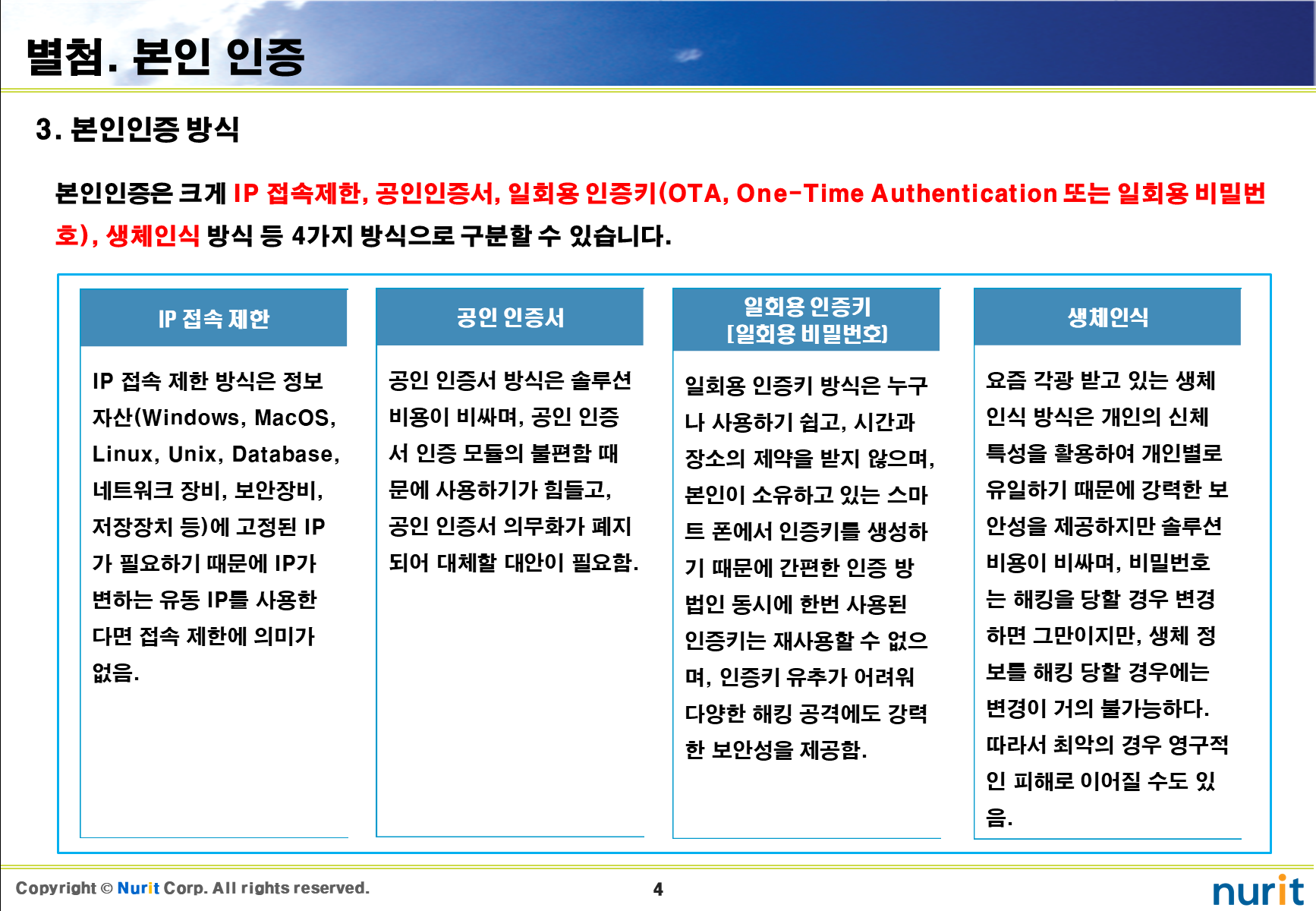 | 정보자산의 보안강화를 위하여 다계층 인증을 위한 BaroPAM과 타 인증 솔루션 비교 (0) | 2023.09.01 |