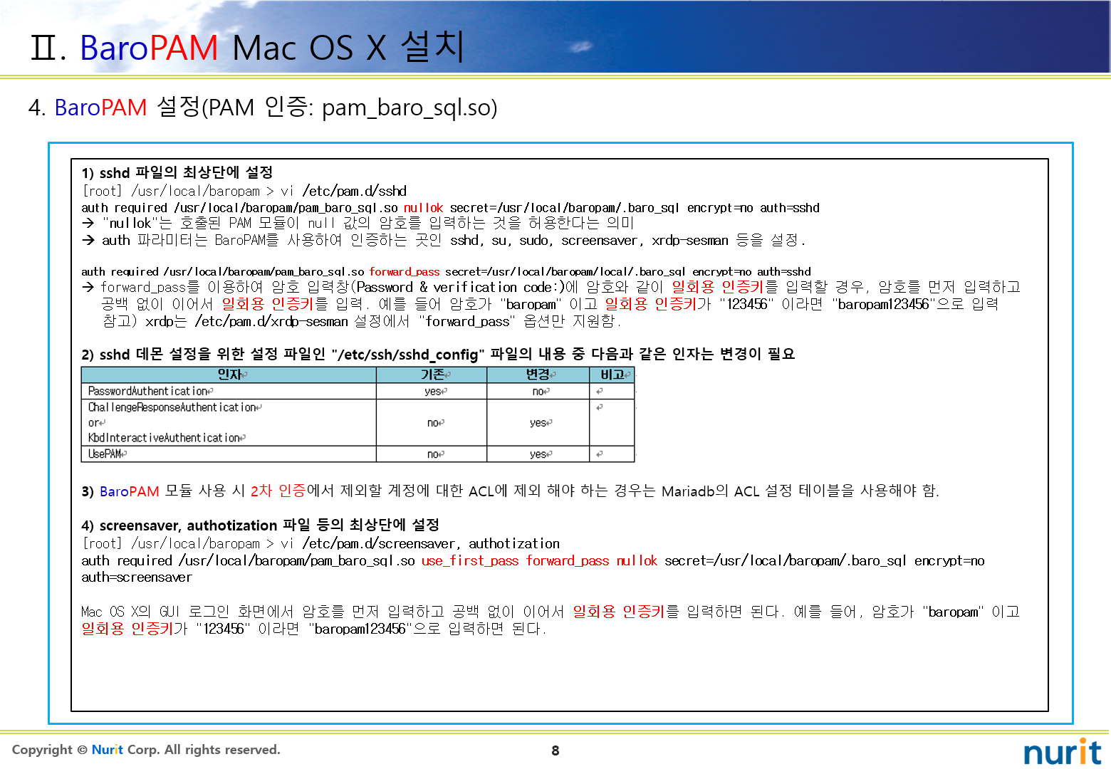 | 정보자산의 보안강화를 위하여 다계층 인증을 위한 BaroPAM 솔루션 설치 요약서(Linux) (0) | 2022.07.21 |