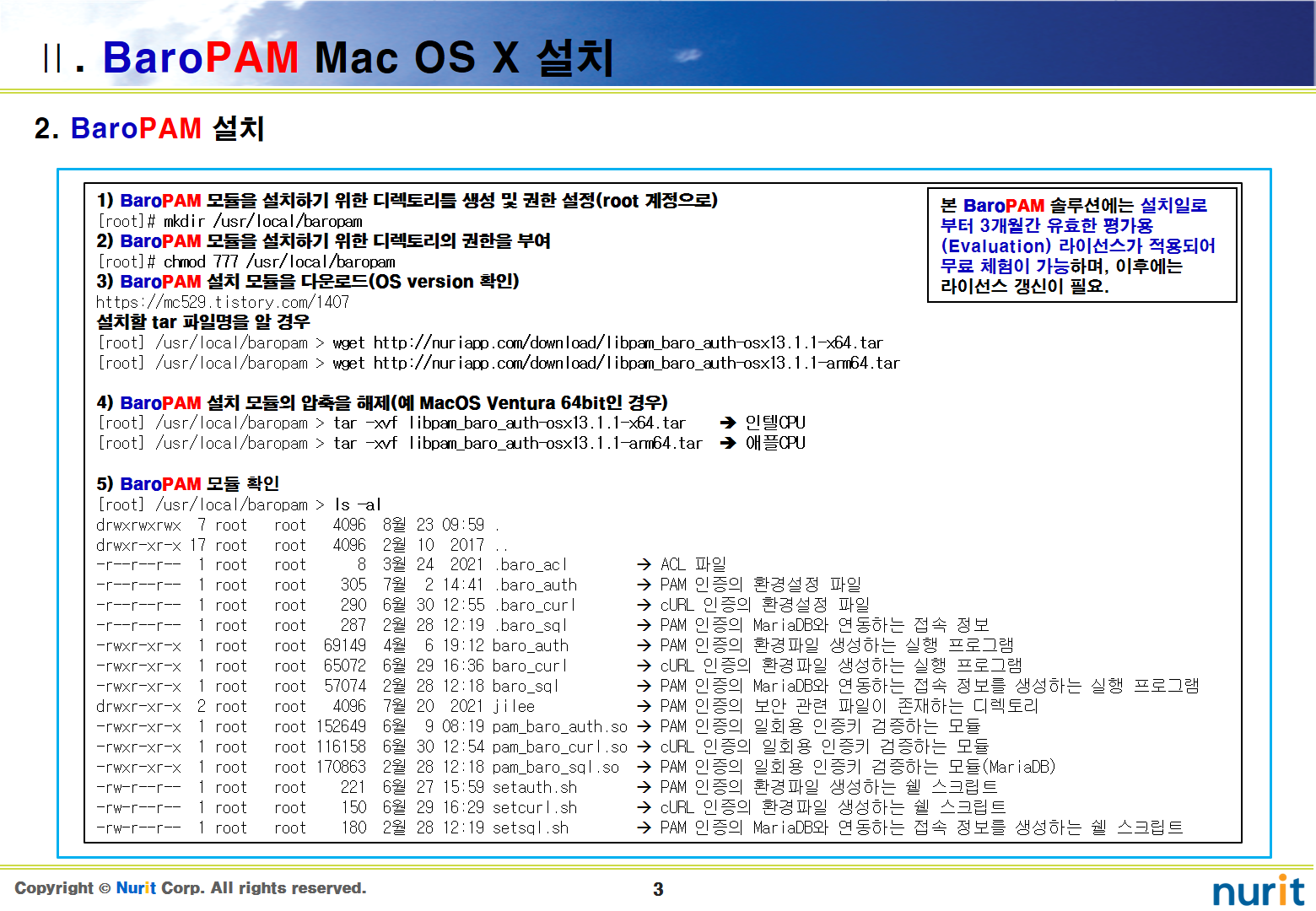 | 정보자산의 보안강화를 위하여 다계층 인증을 위한 BaroPAM 솔루션의 설치 가이드(Mac OS X) (0) | 2023.03.06 |