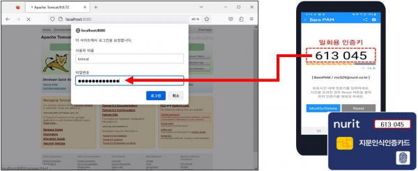 외부 해커 또는 기업 내부 사용자에게 WAS 콘솔의 로그인 ID와 비밀번호가 유출돼도 비밀번호 뒤에 바로PAM 앱에서 생성한 일회용 인증키를 입력해야 하는 사실을 모르기 때문에 안전하게 보호할 수 있다.