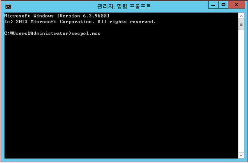 첫번째, 컴퓨터의 명령 프롬프트 화면을 실행한 후 다음과 같이 "secpol.msc" 명령어를 실행하여 보안 정책을 변경할 수 있는 화면을 호출한다.