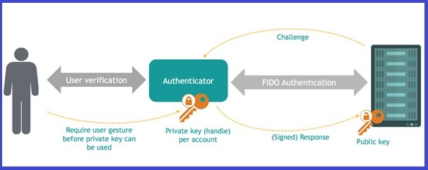 FIDO 인증 방식을 간단히 기술할 때, “사용자 단말기에서 인증을 한 후, 전자서명 값을 FIDO인증 서버로 보내어 서버에서 최종 인증하는 방식입니다” 라고 합니다.