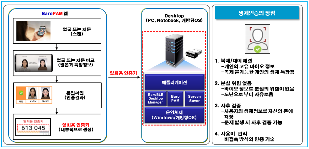 바로팜(BaroPAM)은 제로 트러스트 보안 모델로 정보자산의 보안 강화를 위해 2차 인증(추가 인증)이 필요한 다양한 운영체제와 애플리케이션에 바로 적용할 수 있다.