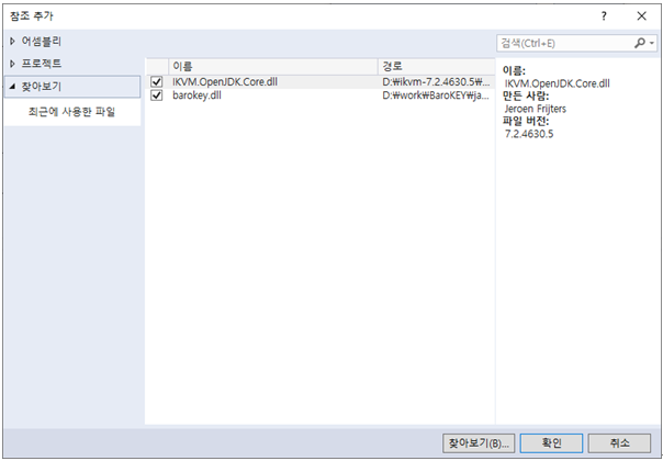 ⑦ barokey.dll 파일을 C# 프로젝트의 참조에 추가