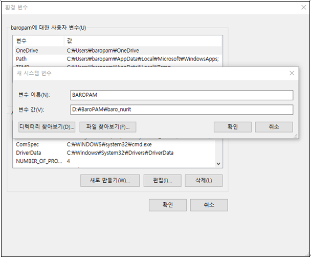 ⑧ 연동 API인 "barokey.dll"에서 사용하는 "BAROPAM" 환경변수