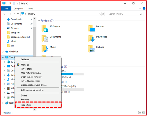 To install BaroPAM, you need to know "Version of Windows, system type, computer name". To do so, "Explorer -> This PC -> Right-click" and the following screen appears.