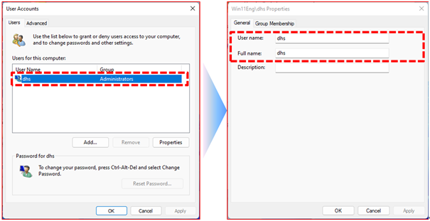 Note) Check Username, which is the Windows user account, in "Search Windows -> Enter 'netplwiz' -> Open".