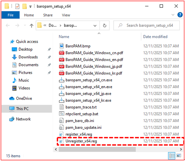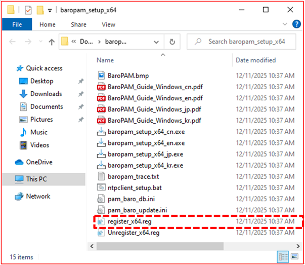 First, execute the "register_x64.reg" file, which is the registry registration file of BaroPAM, as follows in the BaroPAM installation module directory.