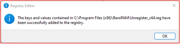 Click the "OK" button on the screen above to complete BaroPAM's registry registration.