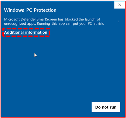 Second, To run the BaroPAM installation file, if you select the "baropam_setup_x64_en.exe" file and click the right mouse button, the screen to install BaroPAM does not appear and the "Windows PC protection" screen may appear as follows.