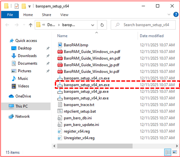 First, if you unzip the compressed BaroPAM installation file (baropam_setup_x64.zip), the following "baropam_setup_x64" directory is created, and the following files exist.