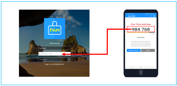 If the secure key set in the information asset and the secure key registered in the BaroPAM app, which is a OTA key generator, are different, the OTA key is different, so you may not be able to log on to Windows.