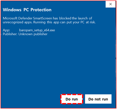 If you click the "Do run" button, the screen to install BaroPAM appears, and if you click the "Do not run" button, the installation of BaroPAM is canceled.