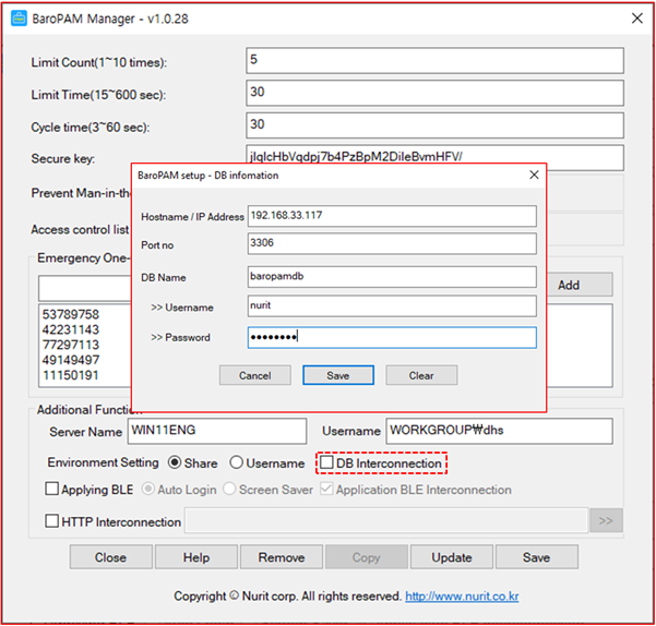 Second, if you click the "Save" button to save the BaroPAM environment setting information, the following message appears.