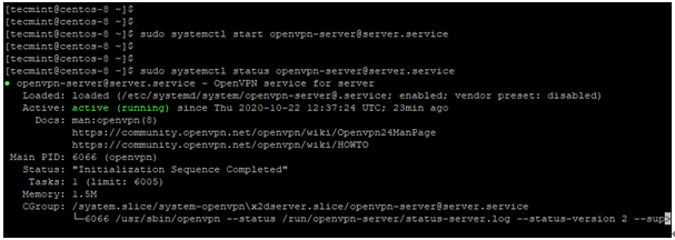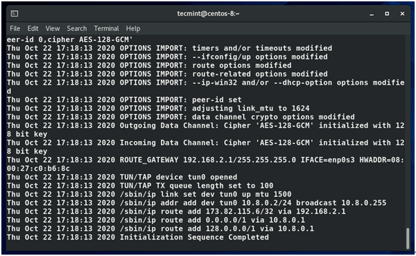| $ sudo openvpn --config tecmint01.ovpn |