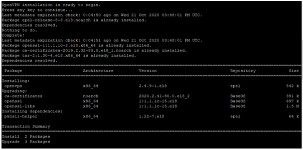 이것은 OpenVPN 패키지를 설치하는 데 필요한 모든 종속성과 함께 제공한다.