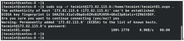 | $ sudo scp -r tecmint@173.82.115.6:/home/tecmint/tecmint01.ovpn . |