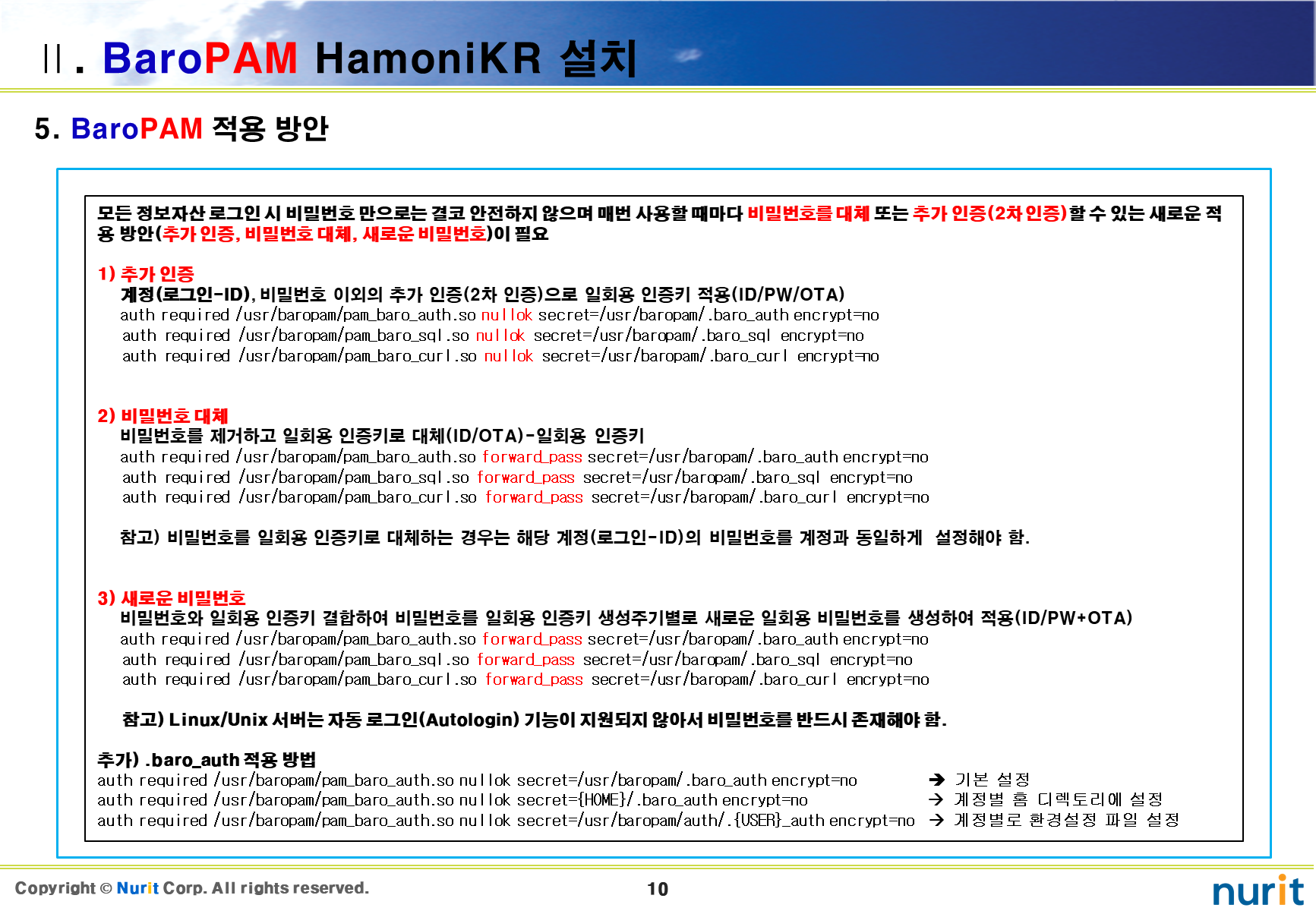 | 정보자산의 보안강화를 위하여 다계층 인증을 위한 BaroPAM 솔루션 설치 요약서(구름 OS) (0) | 2023.11.30 |