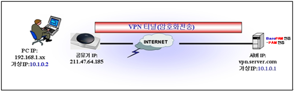 가상사설망(VPN, Virtual Private Network)는 별도의 사설 전용망 없이도 암호 기술에 기반한 터널링(tunneling) 프로토콜(통신규약)을 이용해 지점간을 연결함으로써, 저렴한 비용으로 원거리 통신망(WAN)을 구축할 수 있는 네트워크 솔루션을 의미한다.