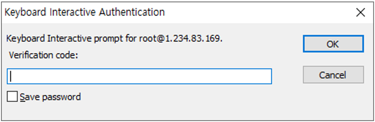 일반 사용자 이름과 비밀번호를 입력하는 것 외에도 SSH를 통해 서버에 연결하는 사용자는 OTP 생성 앱에서 생성한 토큰(OTP, One-Time Password, 일회용 비밀번호)을 입력해야 한다.