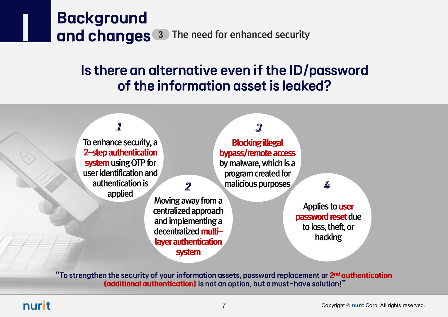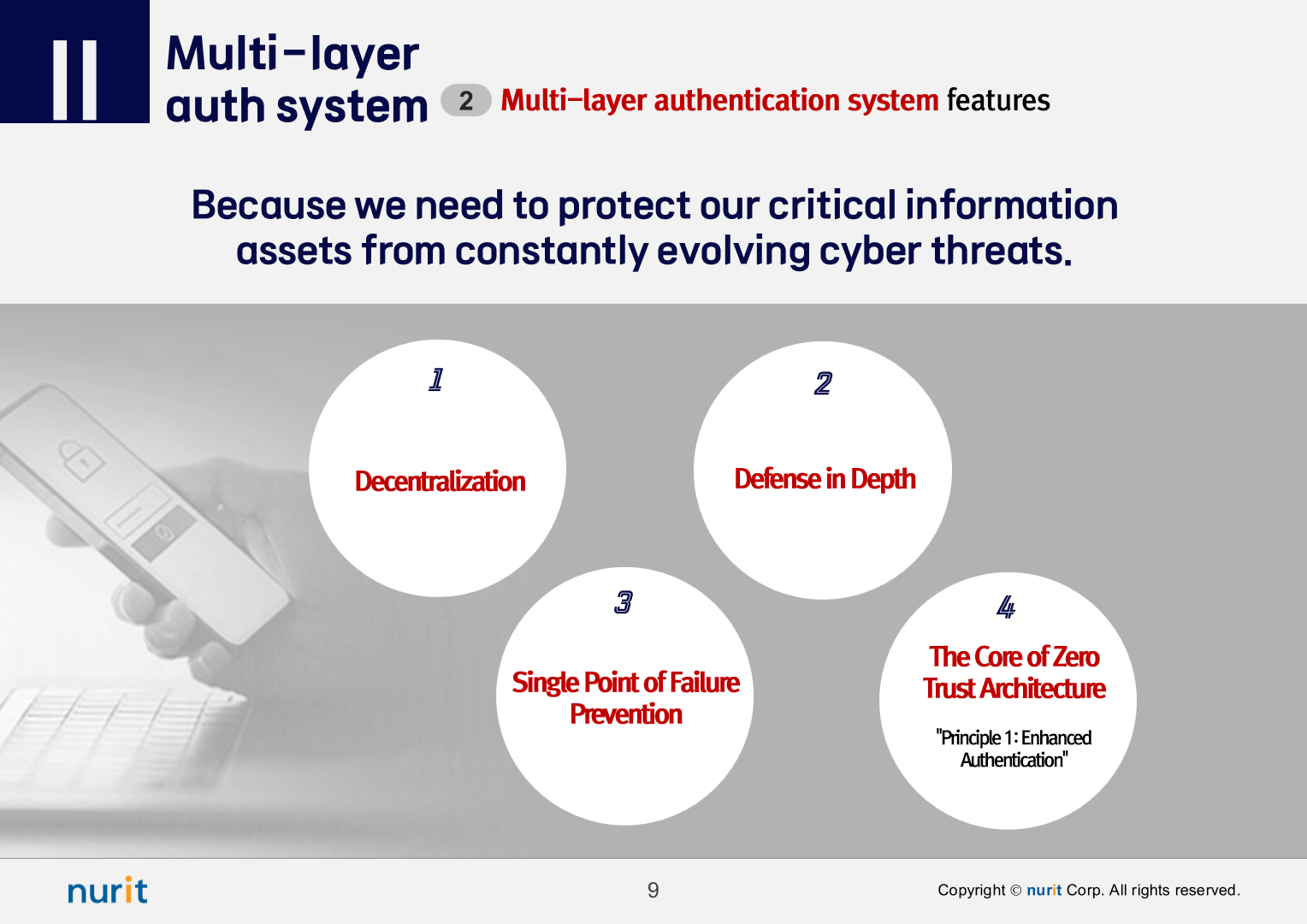 The first security solution to be introduced is a 2nd authentication solution that can block account theft, privilege escalation, and bypass/remote access, Man-in-the-middle attack.