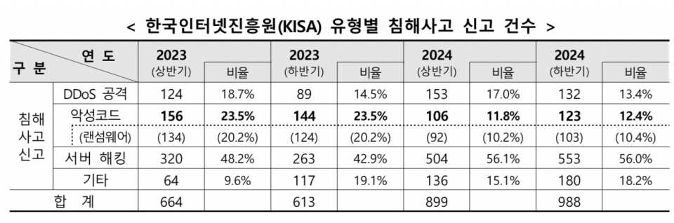 침해사고 증가…서버 해킹과 정보 유출 피해 두드러져