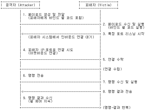 | 연결 방향 | 공격자 -> 피해자 (인바운드 연결) | 피해자 -> 공격자 (아웃바운드 연결) |