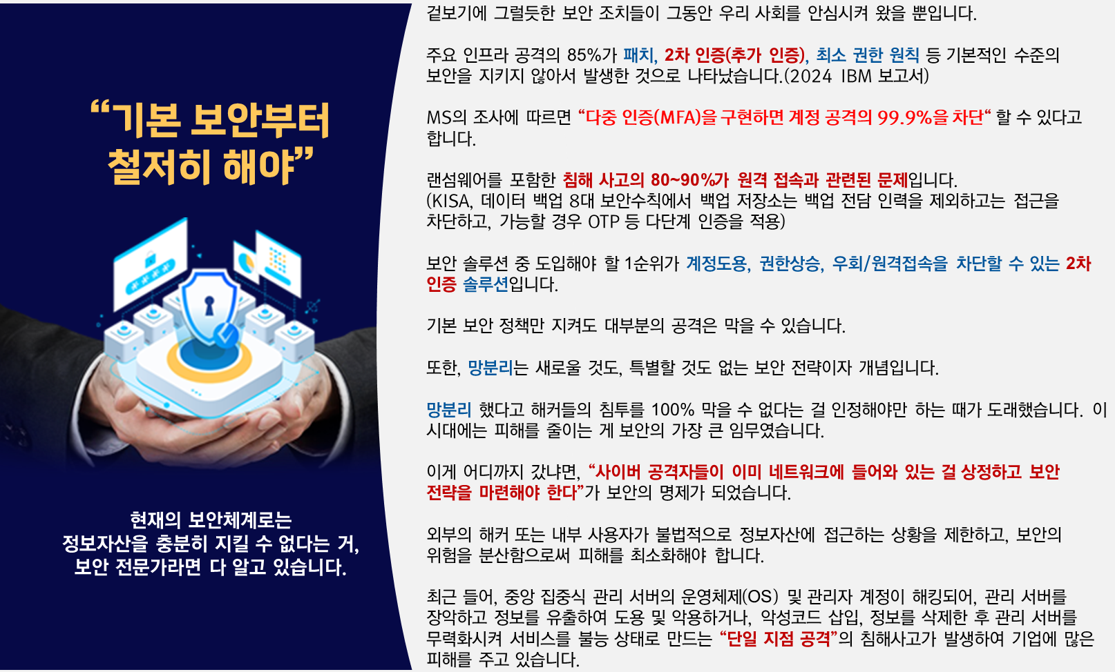 기업들은 이러한 위협에 대응하기 위하여 중앙 집중형 관리 솔루션의 보안 강화가 필수적이다.